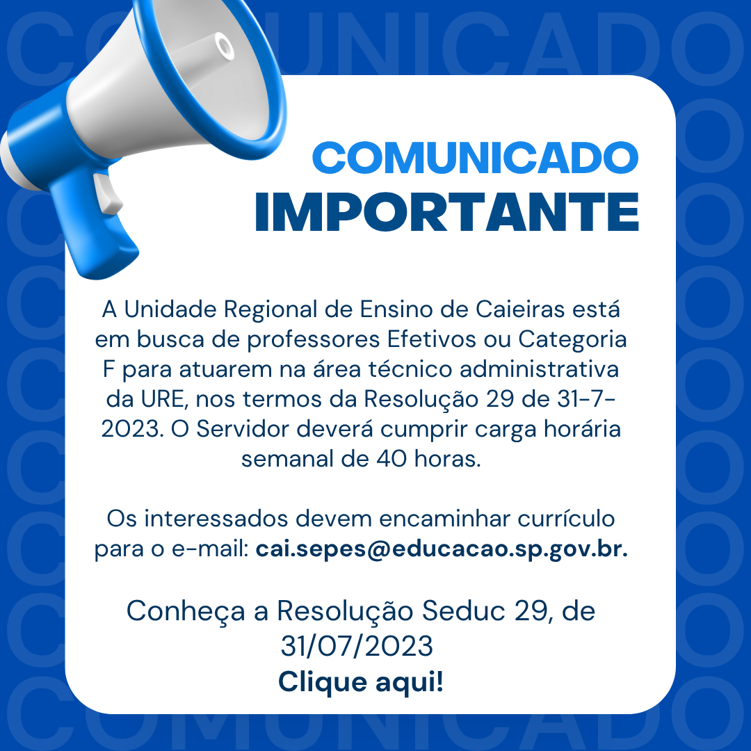 - Processo Seletivo para Supervisor de Ensino/ Supervisor Educacional nº 03/2025A Coordenadora Geral da Unidade Regional de Ensino Caieiras, torna pública a … Leia mais »