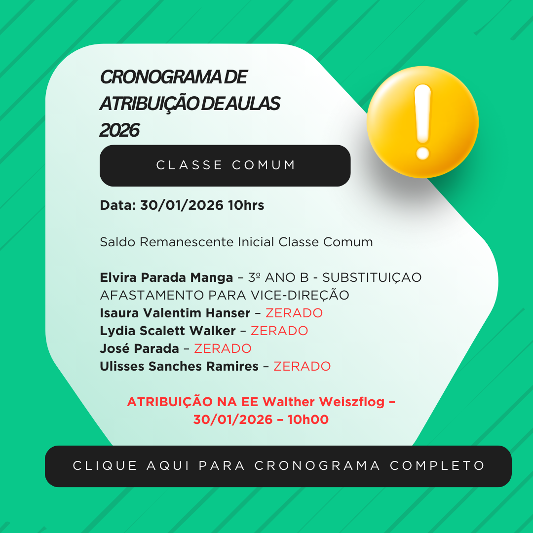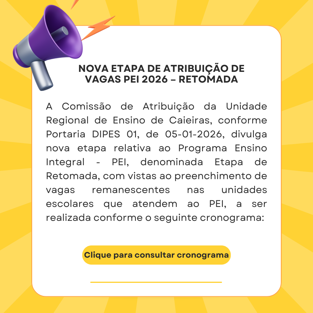 - Nova Etapa de Atribuição de Vagas PEI 2026 – RetomadaA Comissão de Atribuição da Unidade Regional de Ensino de Caieiras, conforme … Leia mais »